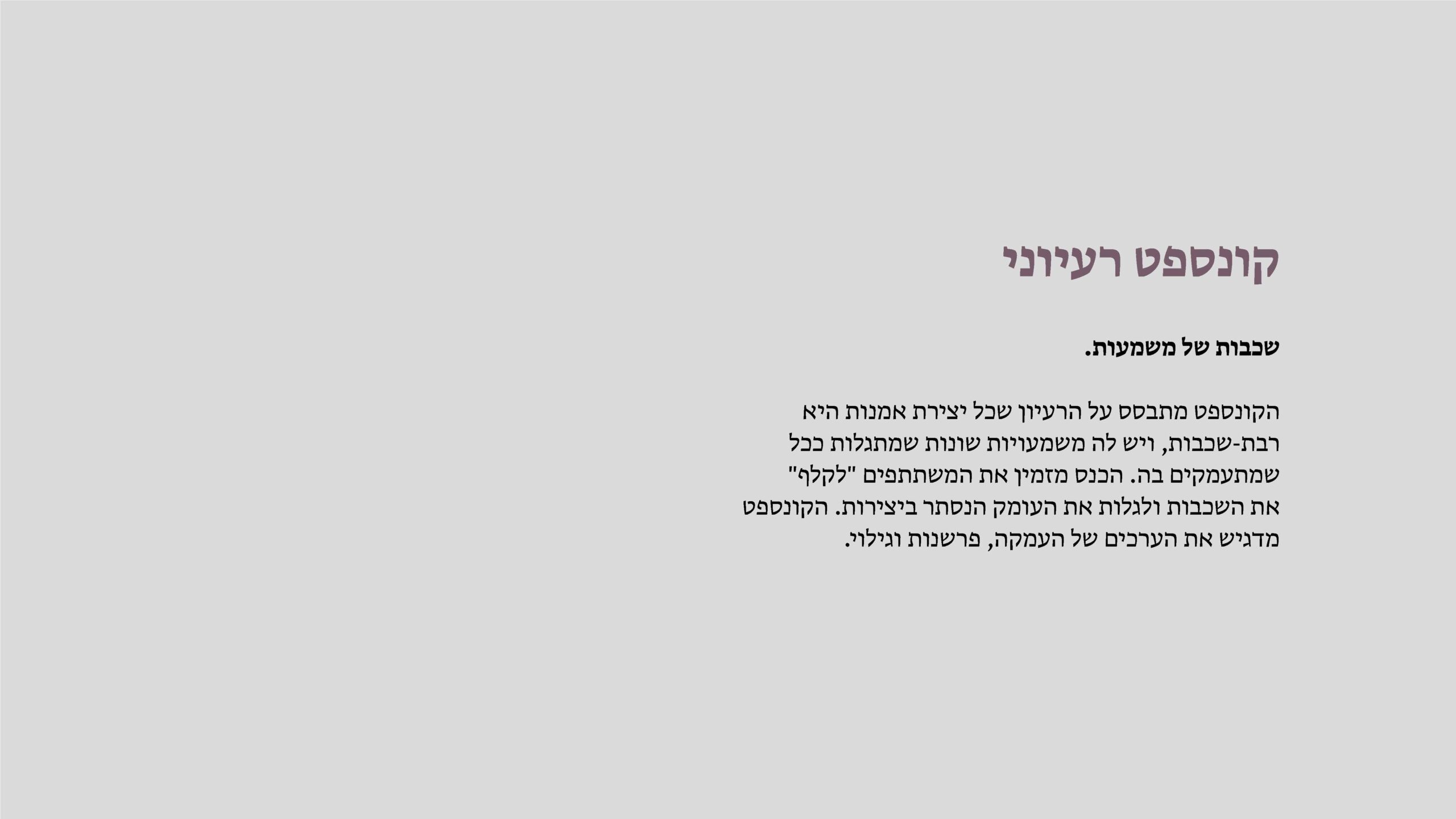 "שכבה שכבה" הוא כנס ייחודי המוקדש לנושא "המשמעות שבאומנות".
